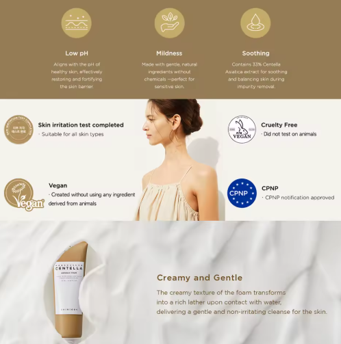 Formulata con bicarbonato di sodio per una pulizia profonda e con l’estratto 84% di cica del Madagascar per un effetto lenitivo e idratante, questa mousse detergente libera la pelle da sporco e impurità lasciando un finish morbido e liscio. Altri ingredienti di origine vegetale, tra cui l’olio di cocco, forniscono ulteriore nutrimento. Tutti gli ingredienti utilizzati sono certificati EWG e rendono questo detergente adatto alle pelli sensibili.